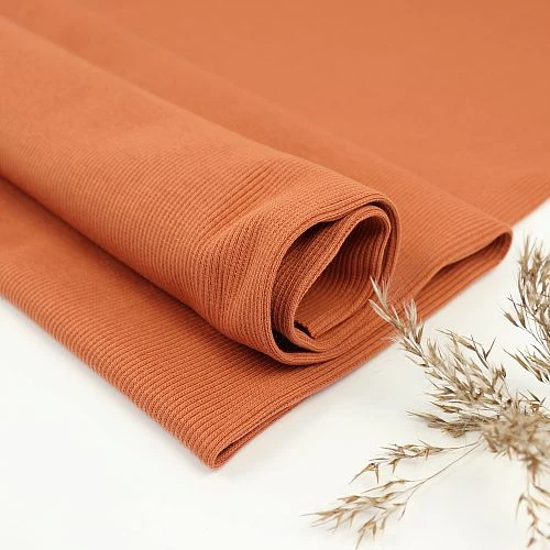 Unser klassich 2×1 geripptes uni Bündchen in rost aus dem Hause mind the MAKER erhältst du flach doubliert. Es ist weich, aber nicht zu weich. Der Bio Bündchenstoff hat einen weichen Griff, ist querelastisch und formstabil. Finde das passende Bündchen zu unseren uni und Designstoffen.