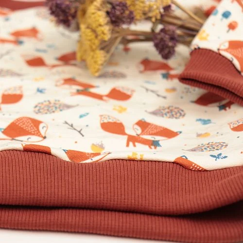 Unser klassich 2×1 geripptes uni Bündchen in rostrot, terracotta aus dem Hause mind the MAKER erhältst du flach doubliert. Es ist weich, aber nicht zu weich. Der Bio Bündchenstoff hat einen weichen Griff, ist querelastisch und formstabil. Finde das passende Bündchen zu unseren uni und Designstoffen.