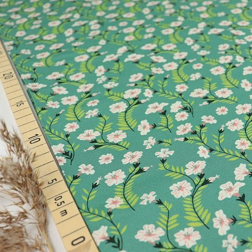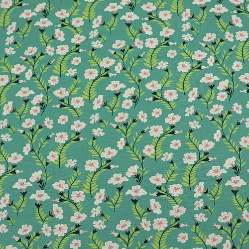 Das märchenhafte Blumenmotiv gibt es bei uns auch als Design Popeline in Bioqualität.
