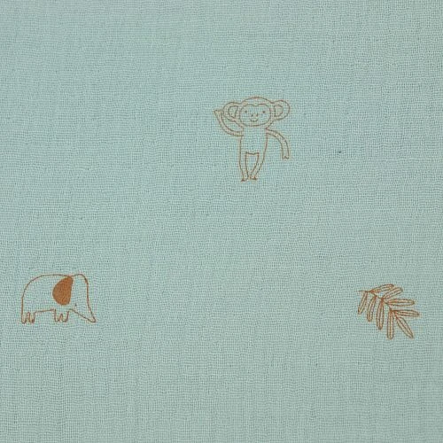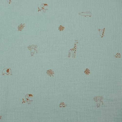 Unser mintfarbener Bio Baumwollmusselin hat einen weichen Griff. Der luftig, lockere Stoff besteht aus zwei punktuell verbundenen Schichten und hat eine gecrinkelte Oberfläche. Der Bio Musselin ist einseitig bedruckt.
