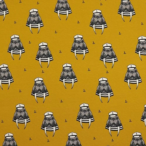 Unser Bio Jersey mit dem Motiv „Captain Walrus“ in ocker aus der Kollektion Sea & Air von Bloome Copenhagen, ist der perfekte Stoff für Kinder und Junggebliebene. Wie süß ist dieses maritim gekleidete Walross mit kleinen Ankern denn bitte? Da wächst doch die Vorfreude auf die Strandzeit. Wir sind verliebt. Er schmiegt sich fabelhaft weich an. Auf Grund der Bi-Elastizität knittert er kaum. Der Stoff lässt sich wunderbar verarbeiten und ist vernäht ein komfortabler Begleiter für die Kleinsten in allen Lebenslagen. Dieser Bio Jersey eignet sich wunderbar für Baby- und Kinderbekleidung wie Kinder Shirts, Kinder Hoodies, Schlafanzüge usw. Selbstverständlich können daraus ebenfalls wundeschöne Baby- und Kinderaccessoires gezaubert werden. Außerdem sind der Kreativität zur Verarbeitung im Wohnbereich keine Grenzen gesetzt.