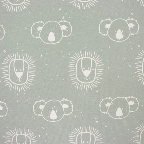 Der silbergrüne Bio Jersey mit weißen, handgemalten Tieren wurde im Digitaldruckverfahren mit hochwertigen Reaktiv-Farben bedruckt. Mit den Strichzeichnungen der Designerin Laura Budak von MichelKids Designs zeigt Stoffonkel einen ganz neuen Stil.