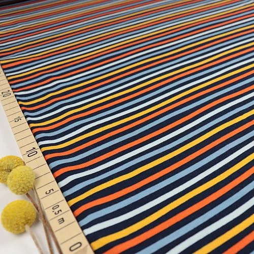 Bio Jersey Stoff Mit Streifen Navy Orange Als Ringeljersey