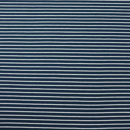 Die Streifen sind 7mm und 3mm breit und sind nicht gedruckt, sondern es wurde farbiges Garn verstrickt. Die Farbe ist eine Mischung aus Petrol und Blau.