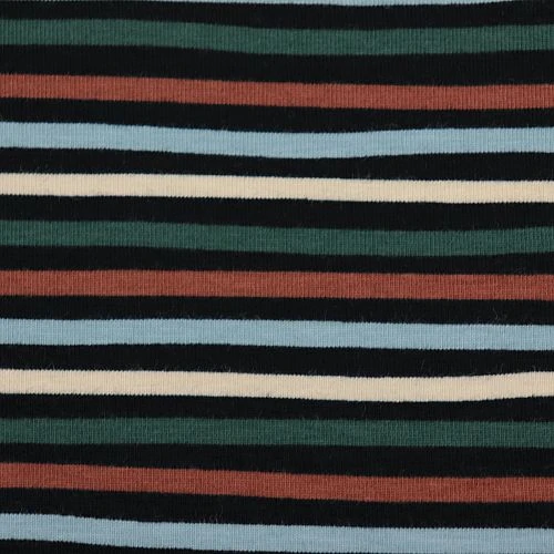 Die gedruckten Streifen verlaufen nicht klassich parallel, sondern haben leichte Wellen, was den Stoff sehr interessant macht.
