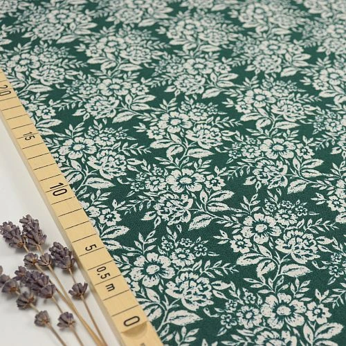 Das wunderschöne Design aus der Serie Flora by Cassidy Demkov mit weißen Blumen auf petrolfarbenem Hintergrund lässt jedes Herz höher schlagen. Auch für Wohnaccessoires wie Kissen und Bezüge ist der Stoff zu empfehlen.