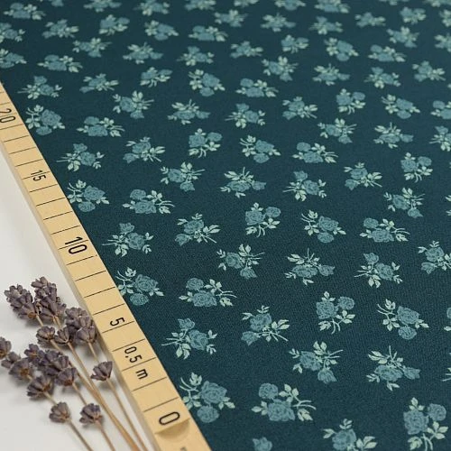 Das wunderschöne Design aus der Serie Flora by Cassidy Demkov mit Wildrosen in petrol lässt jedes Herz höher schlagen. Auch für Wohnaccessoires wie Kissen und Bezüge ist der Stoff zu empfehlen.