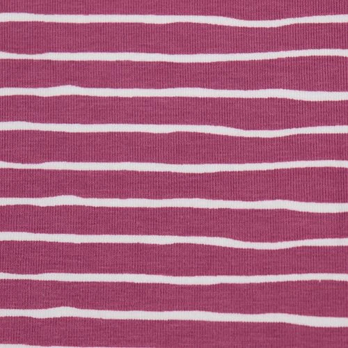 Unser gestreifter Jersey Stoff in der Farbe holunder aus dem Hause Stoffonkel schmiegt sich fabelhaft weich an deinen Körper an. Der Bio Jerseystoff mit seinen leicht wellenförmigen Streifen lässt sich wunderbar verarbeiten und ist vernäht dein komfortabler Begleiter in allen Lebenslagen. Dein neuer nachhaltiger Bio Ringeljersey in holunder eignet sich wunderbar für Baby- und Kinderbekleidung, gleichzeitig für T-Shirts, Kleider und Röcke. Freizeit- und Sportbekleidung können selbstverständlich auch daraus gezaubert werden. Außerdem sind der Kreativität zur Verarbeitung im Wohnbereich keine Grenzen gesetzt.