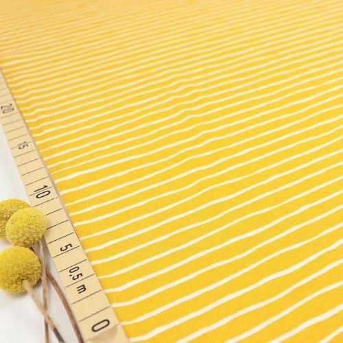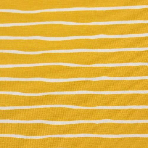 Unser gestreifter Jersey Stoff in der Farbe senf aus dem Hause Stoffonkel schmiegt sich fabelhaft weich an deinen Körper an. Der Bio Jerseystoff mit seinen leicht wellenförmigen Streifen lässt sich wunderbar verarbeiten und ist vernäht dein komfortabler Begleiter in allen Lebenslagen. Dein neuer nachhaltiger Bio Ringeljersey in senfgelb eignet sich wunderbar für Baby- und Kinderbekleidung, gleichzeitig für T-Shirts, Kleider und Röcke. Freizeit- und Sportbekleidung können selbstverständlich auch daraus gezaubert werden. Außerdem sind der Kreativität zur Verarbeitung im Wohnbereich keine Grenzen gesetzt.