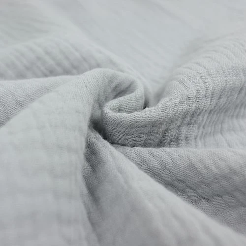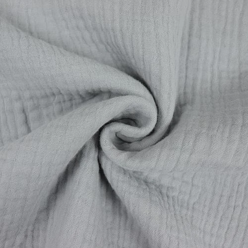 Unser grauer Bio Baumwollmusselin hat einen besonders weichen Griff. Der luftig, lockere Stoff besteht aus drei punktuell verbundenen Schichten und hat eine gecrinkelte Oberfläche. Vorder- und Rückseite sind gleich.
