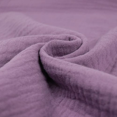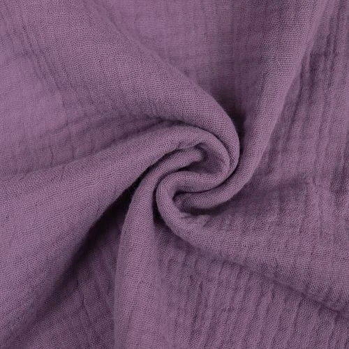 Unser fliederfarbener Bio Baumwollmusselin hat einen besonders weichen Griff. Der luftig, lockere Stoff besteht aus drei punktuell verbundenen Schichten und hat eine gecrinkelte Oberfläche. Vorder- und Rückseite sind gleich.