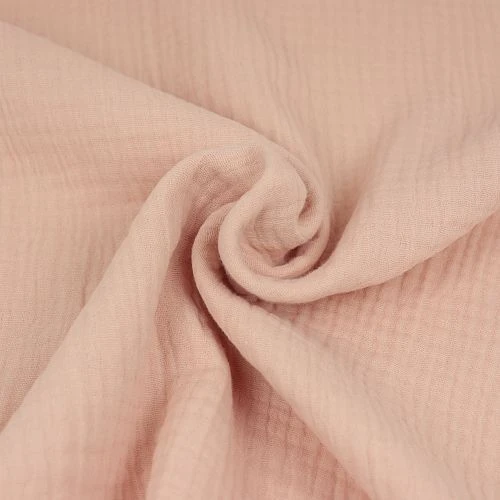 Unser hautfarbener Bio Baumwollmusselin hat einen besonders weichen Griff. Der luftig, lockere Stoff besteht aus drei punktuell verbundenen Schichten und hat eine gecrinkelte Oberfläche. Vorder- und Rückseite sind gleich.