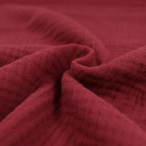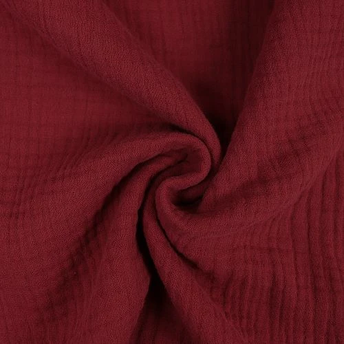Unser roter Bio Baumwollmusselin hat einen besonders weichen Griff. Der luftig, lockere Stoff besteht aus drei punktuell verbundenen Schichten und hat eine gecrinkelte Oberfläche. Vorder- und Rückseite sind gleich.