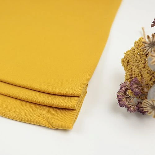 Es handelt sich um einen leichten bis mittelschweren French Terry mit fließendem, weichen Fall.