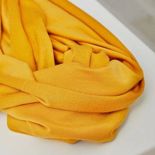LIGHT TERRY SWEAT aus Tencel™ Lyocell Fasern ist ein exklusives, glattes und seidig weiches Sommersweat Gestrick von meet MILK. Der bersteinfarbene Stoff hat eine sehr feine marmorierte, glänzende Textur und eine kuschelweiche Oberfläche.