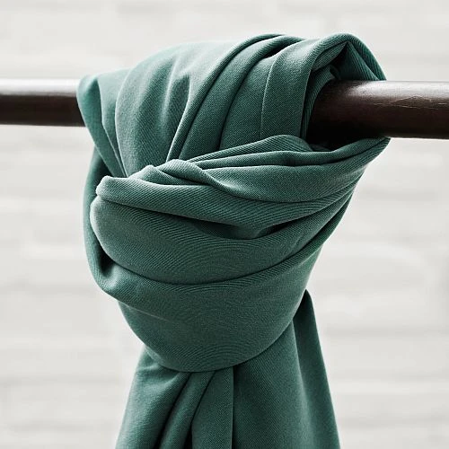 Durch den geringen Anteil an Elasthan erhältst du einen aqua blaugrünen Stoff mit hohem Tragekomfort und viel Bewegungsfreiheit.